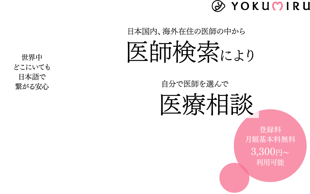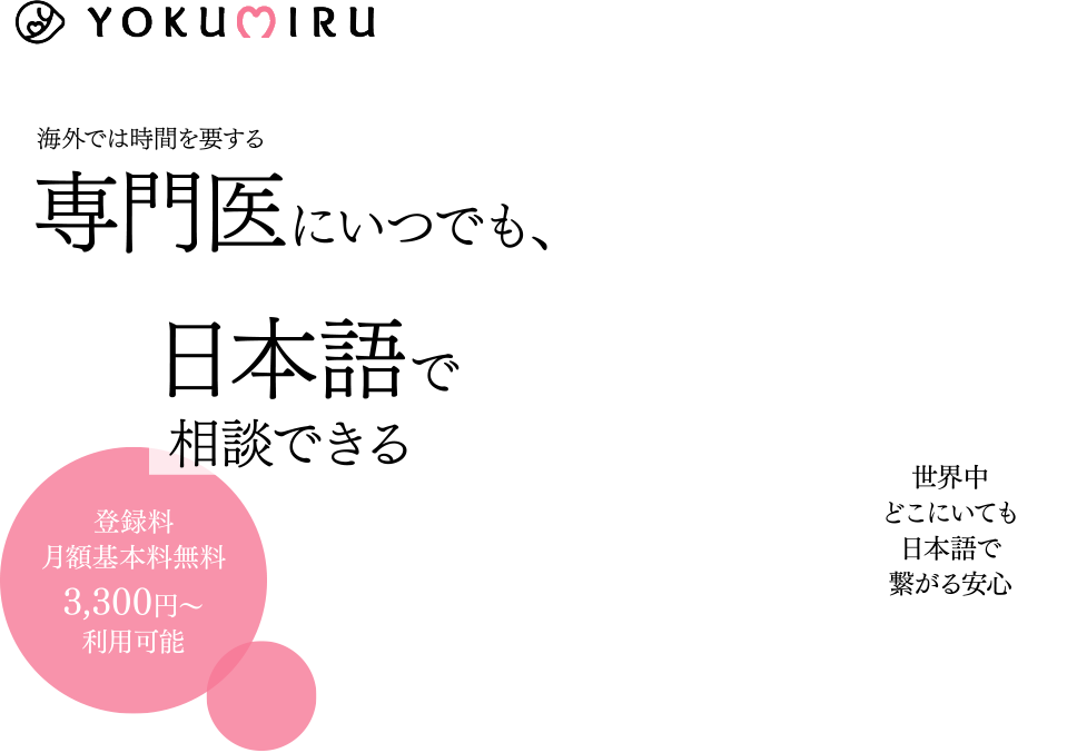 YOKUMIRUなら世界中どこにいても、日本人医師にオンラインでいつでも相談することが可能です。