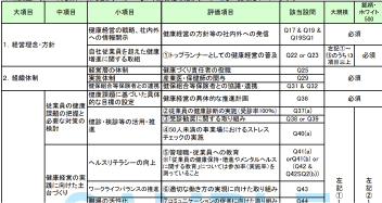 健康経営では、『経営』と名がついている通り、企業全体としての取り組みが求められます。そのため、人事部や健康管理室等が単体で広めるのではなく、経営陣が会社の意志として表明し推進することが必要です。実際に、経済産業省の健康経営調査票では最初の2項目が『1.経営理念・方針』『2.組織体制』となっており、経営者・役員によるコミットメントが問われています。
